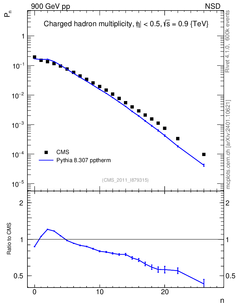 Lines: data, pythia8 8.307 pptherm |