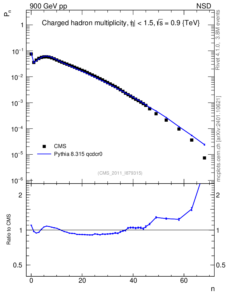 Lines: data, pythia8 8.315 qcdcr0 |