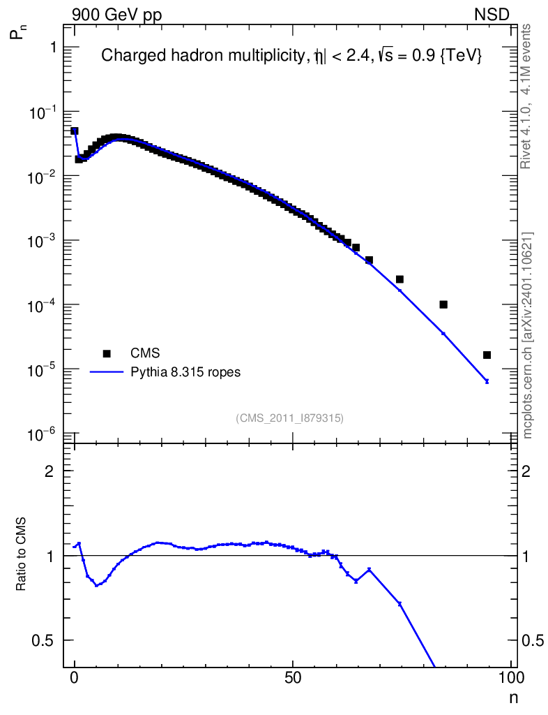Lines: data, pythia8 8.315 ropes |