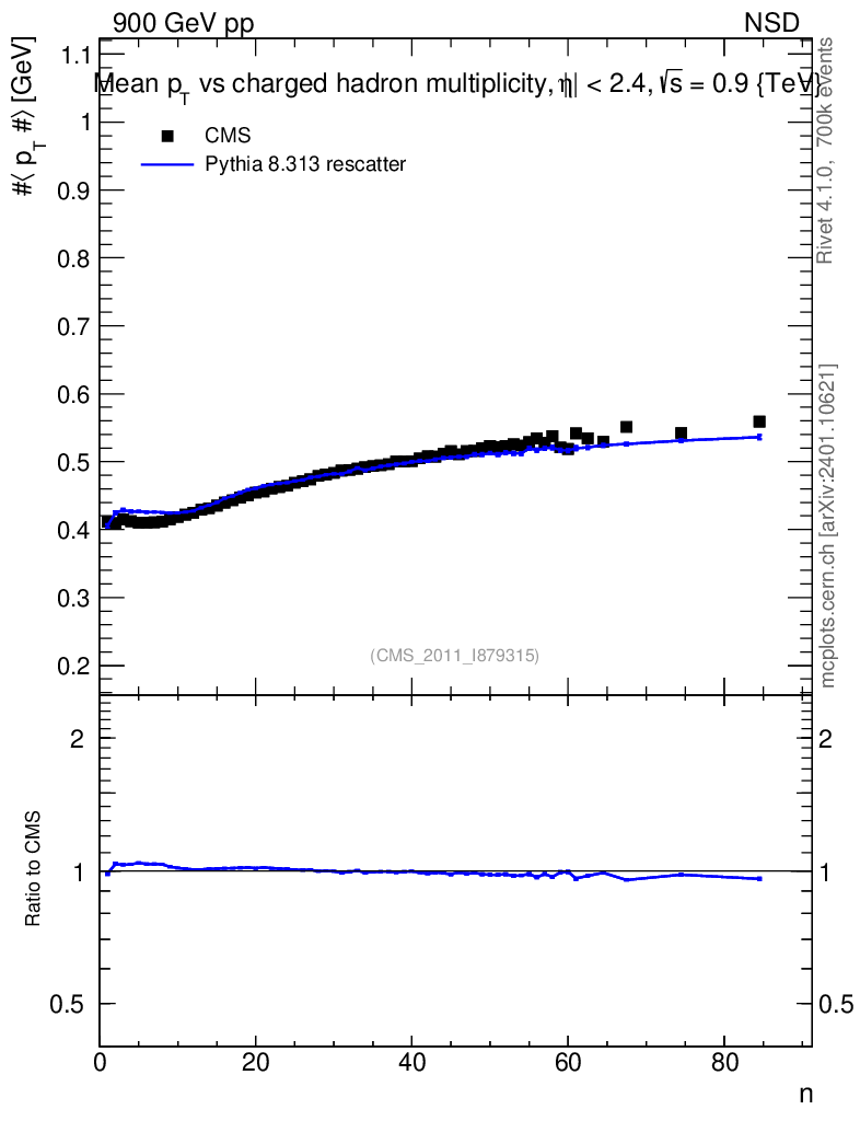 Lines: data, pythia8 8.313 rescatter |