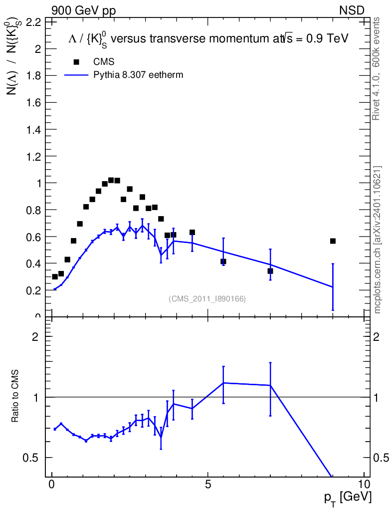 Observable: Λ/K0S vs pT
