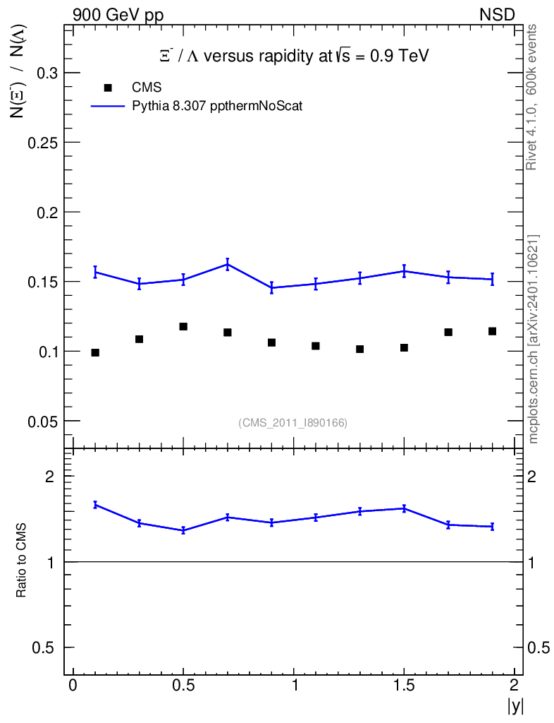 Lines: data, pythia8 8.307 ppthermNoScat |