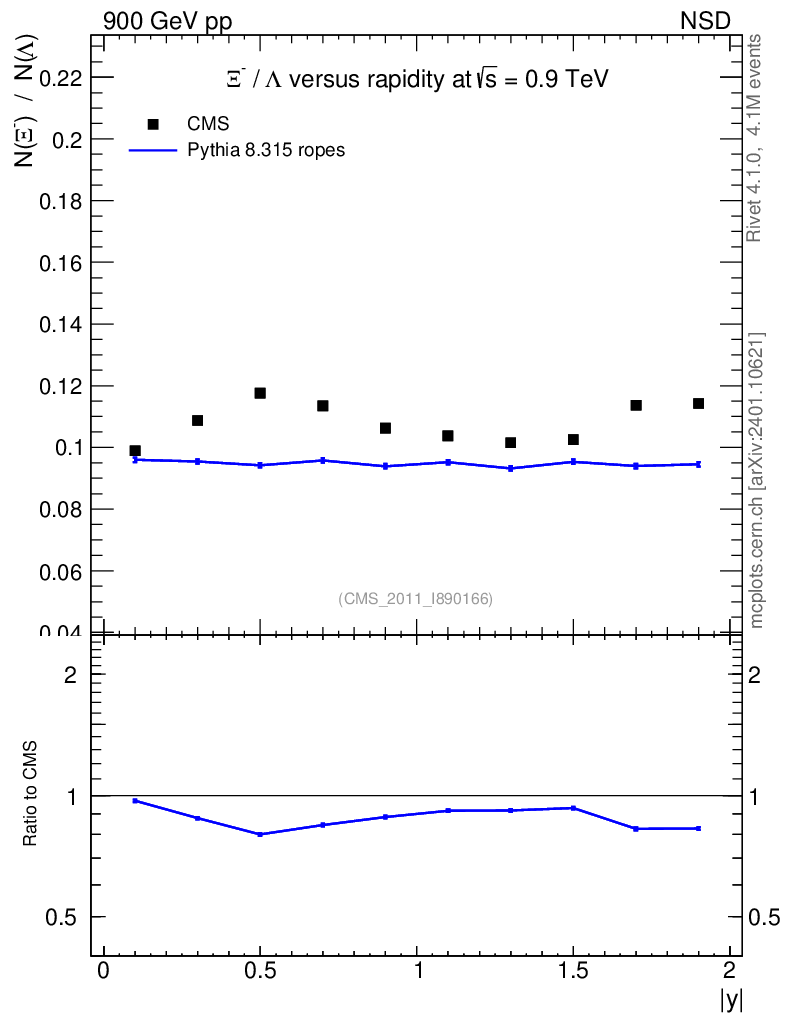 Lines: data, pythia8 8.315 ropes |