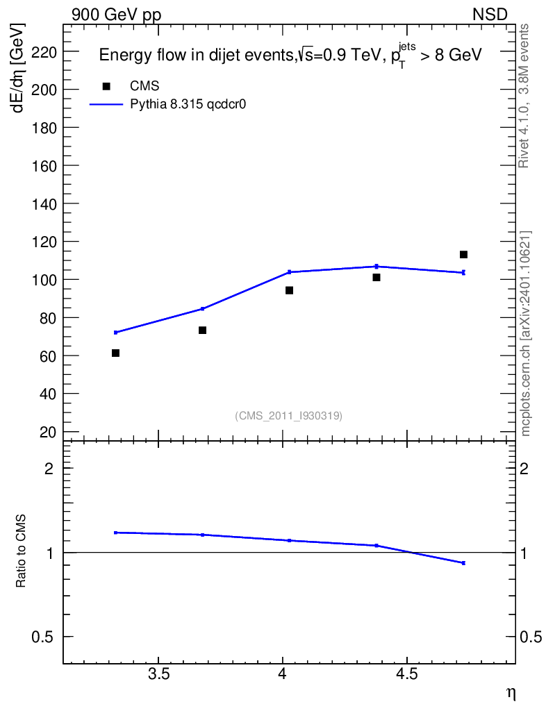 Lines: data, pythia8 8.315 qcdcr0 |