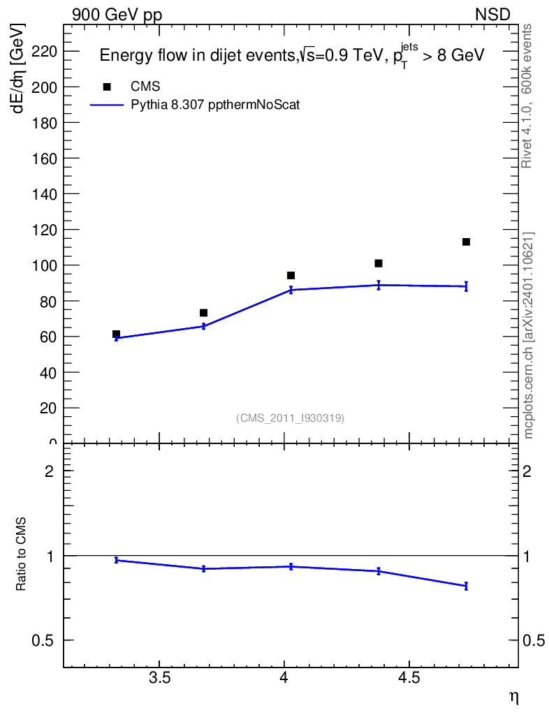 Lines: data, pythia8 8.307 ppthermNoScat |