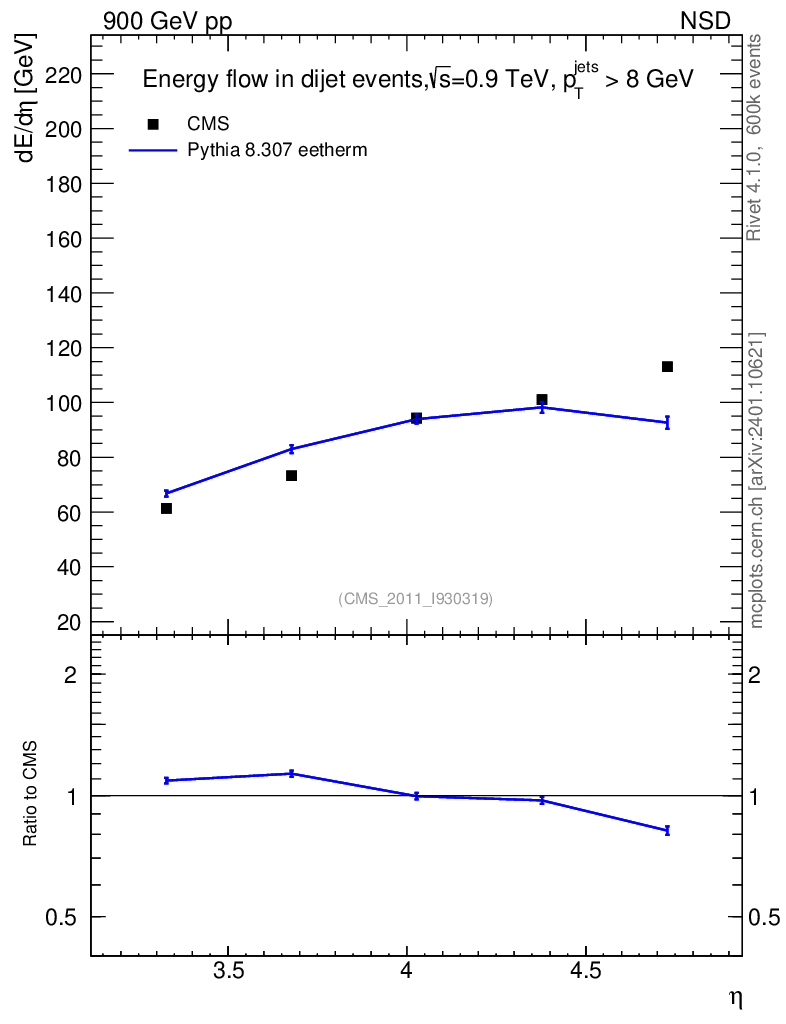 Lines: data, pythia8 8.307 eetherm |