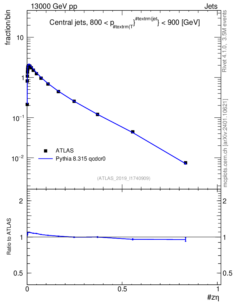 Lines: data, pythia8 8.315 qcdcr0 |