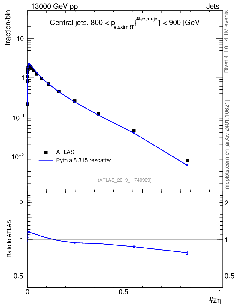 Lines: data, pythia8 8.315 rescatter |
