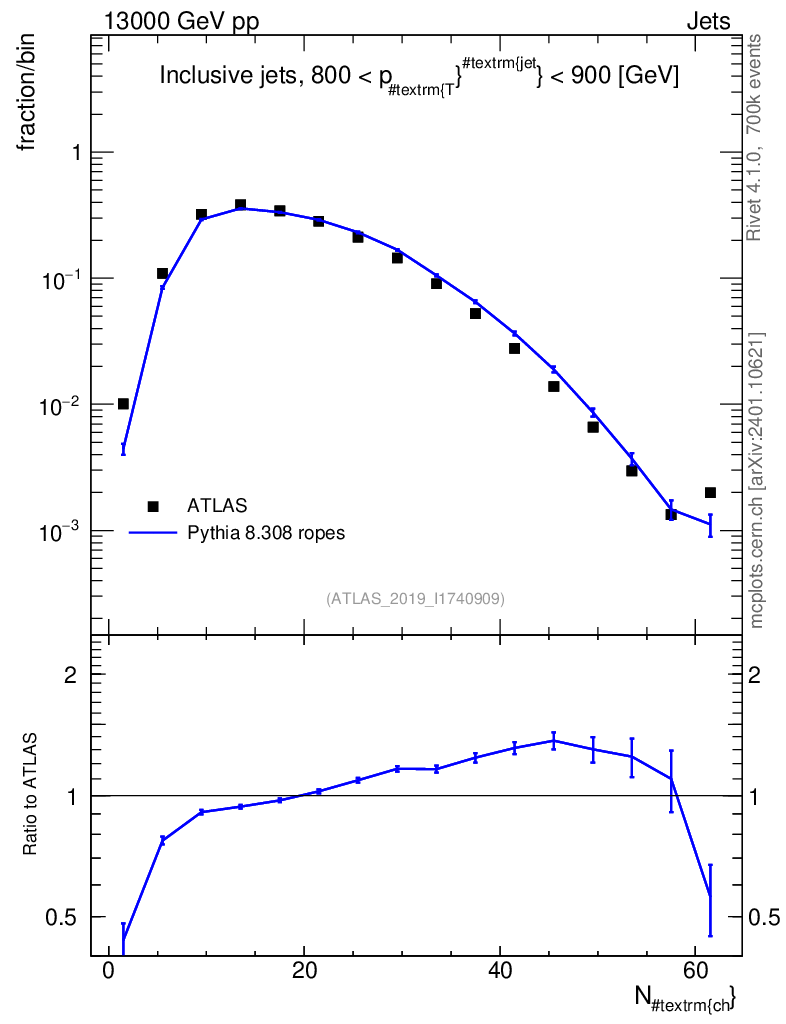 Lines: data, pythia8 8.308 ropes |