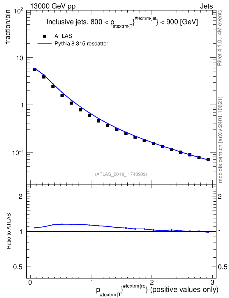 Lines: data, pythia8 8.315 rescatter |