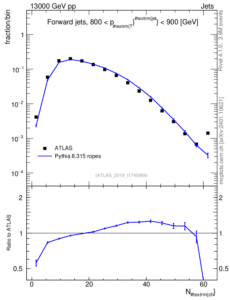 Lines: data, pythia8 8.315 ropes |