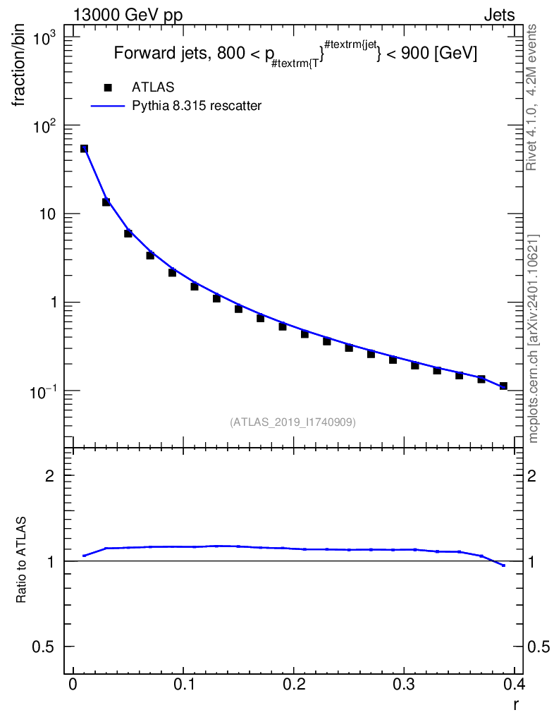 Lines: data, pythia8 8.315 rescatter |