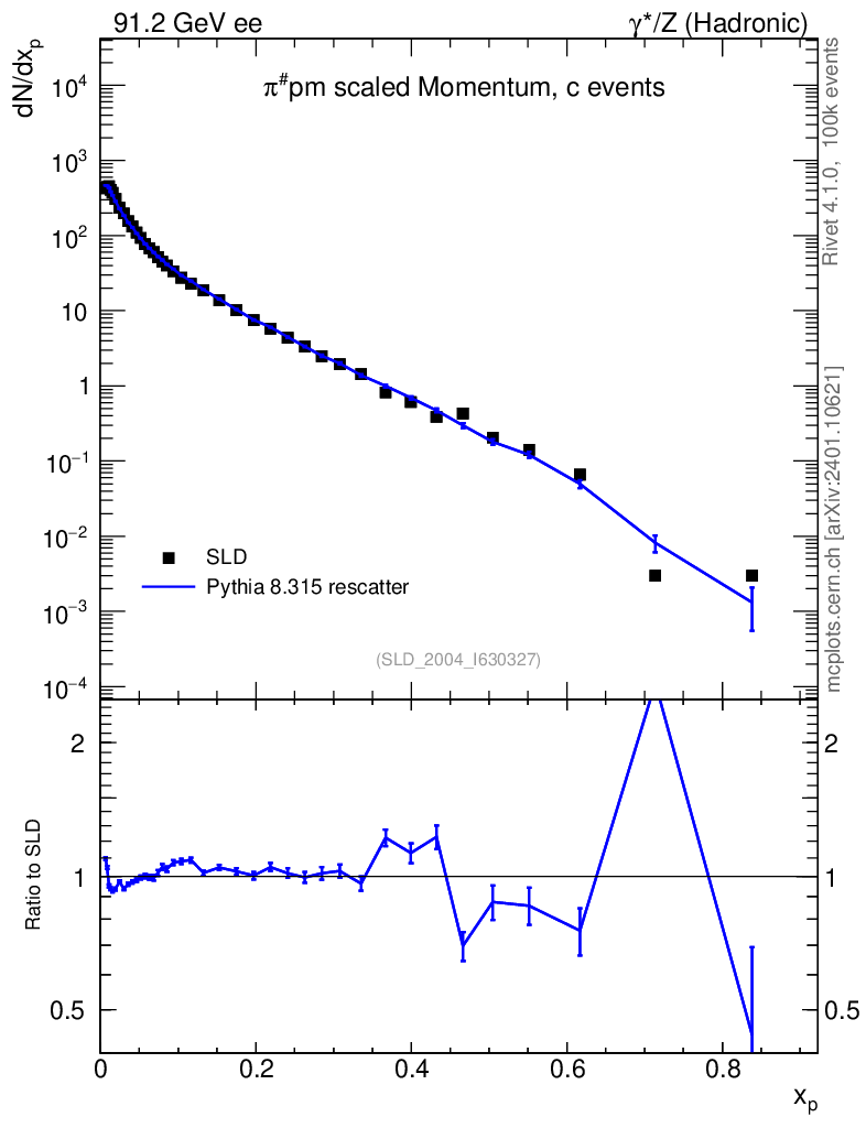 Lines: data, pythia8 8.315 rescatter |