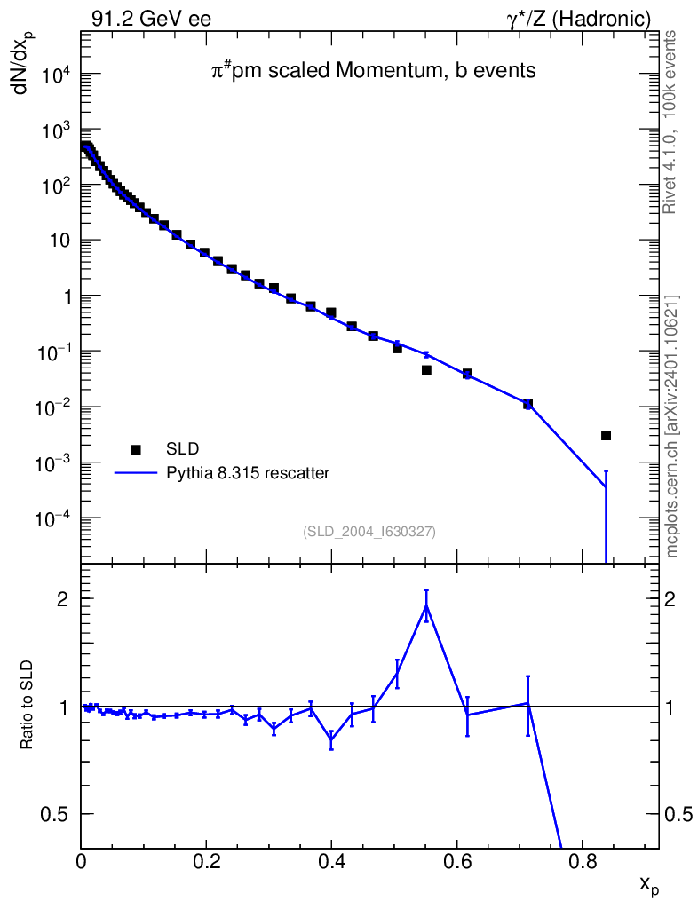 Lines: data, pythia8 8.315 rescatter |