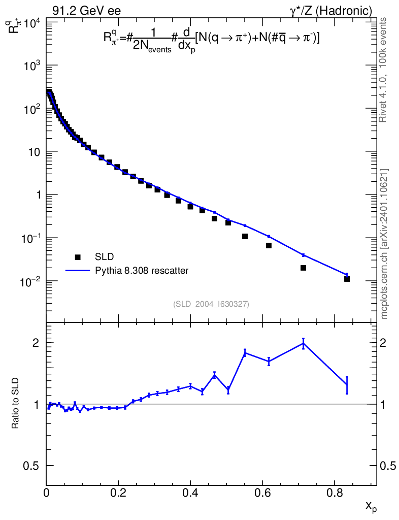 Lines: data, pythia8 8.308 rescatter |