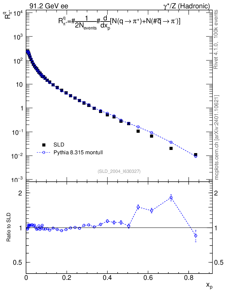 Lines: data, pythia8 8.315 montull | compare with other tunes
