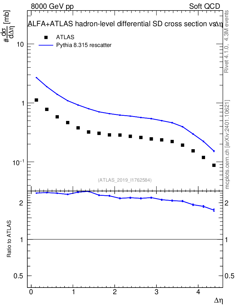 Lines: data, pythia8 8.315 rescatter |
