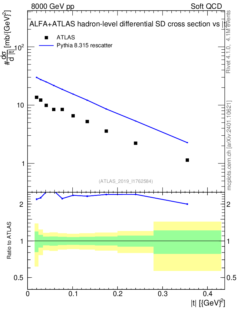 Lines: data, pythia8 8.315 rescatter |