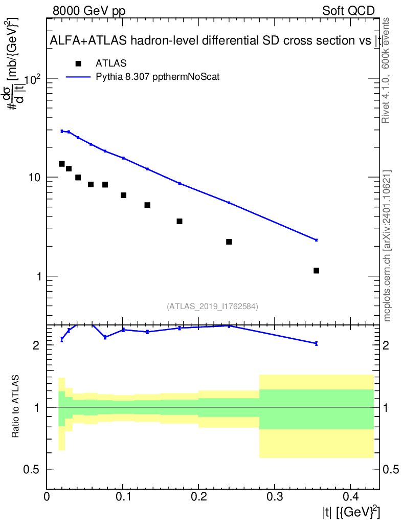 Lines: data, pythia8 8.307 ppthermNoScat |