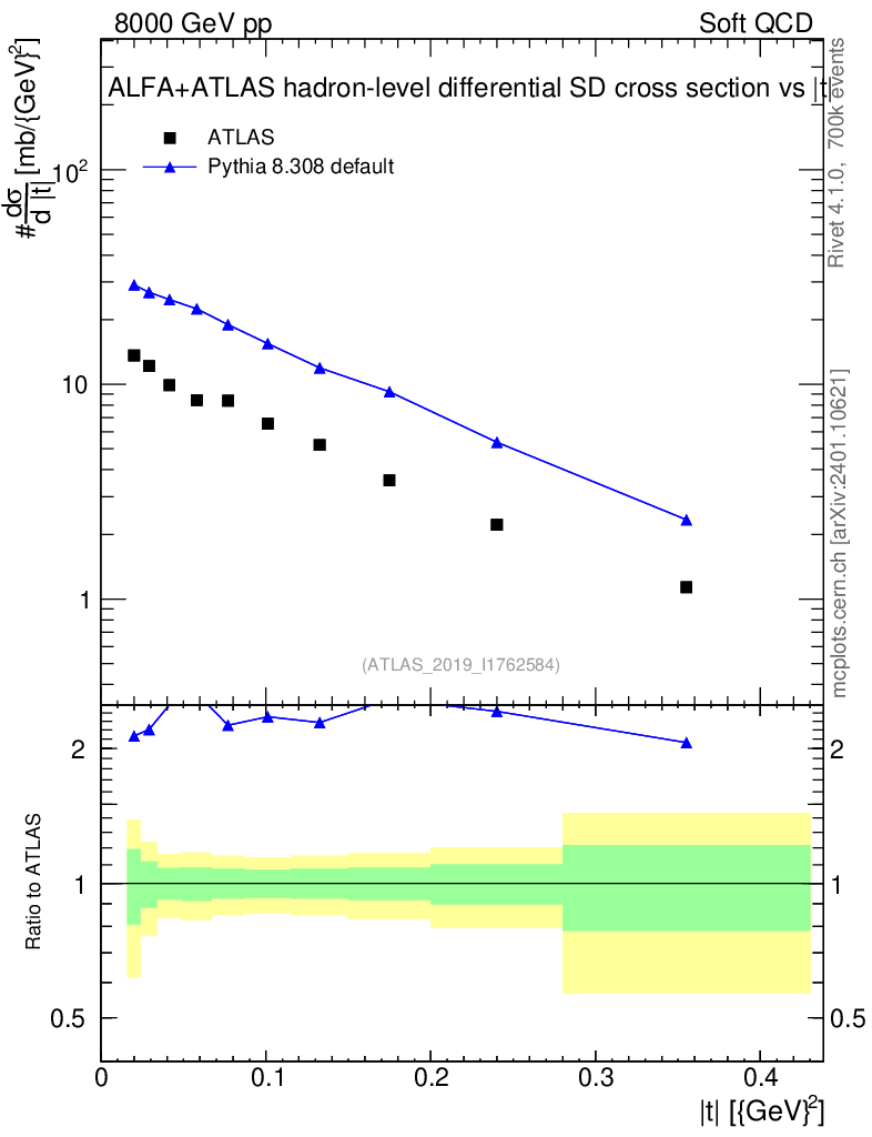 Lines: data, pythia8 8.308 default |