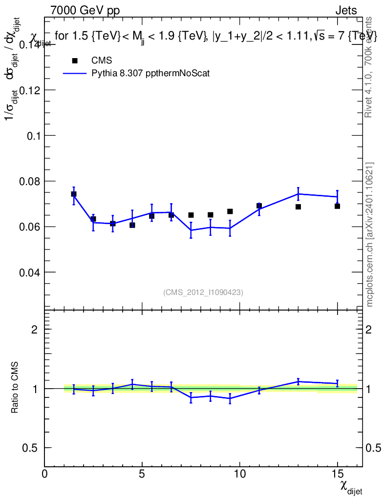 Lines: data, pythia8 8.307 ppthermNoScat |