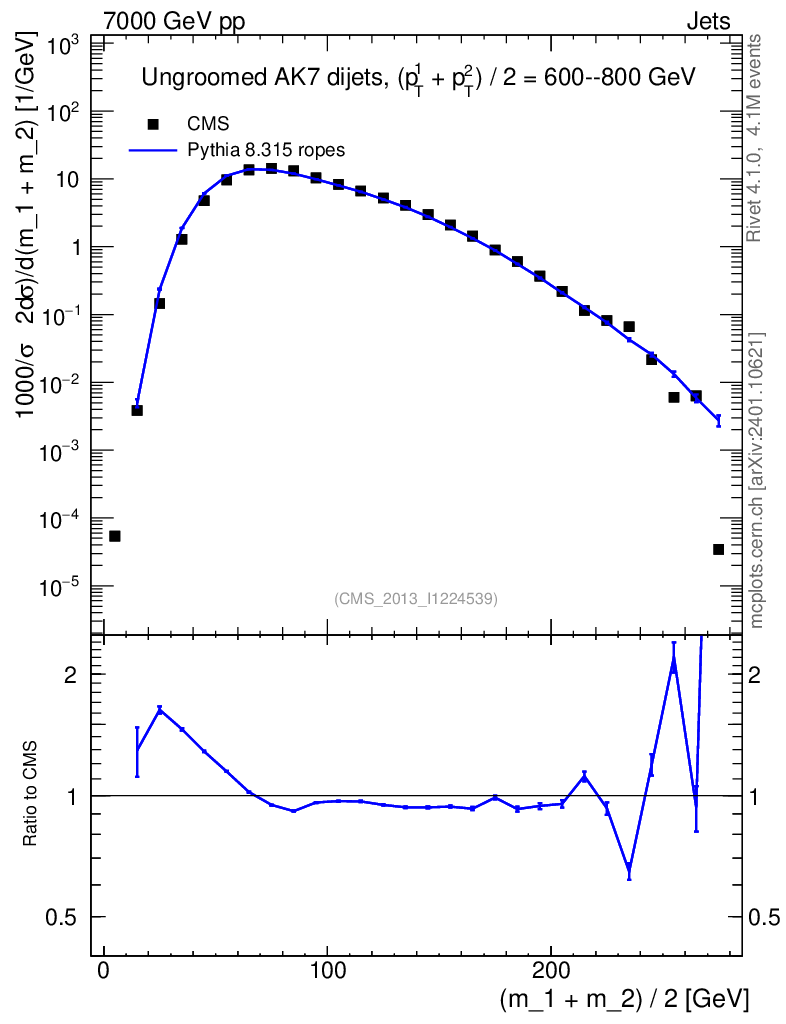 Lines: data, pythia8 8.315 ropes |