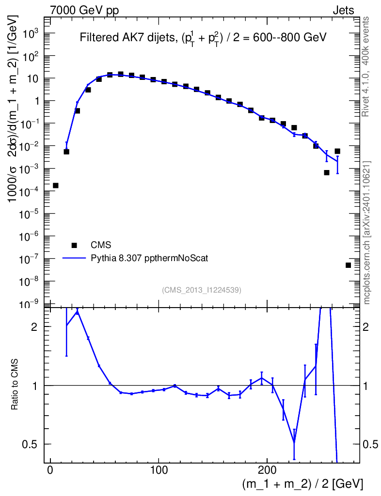 Lines: data, pythia8 8.307 ppthermNoScat |
