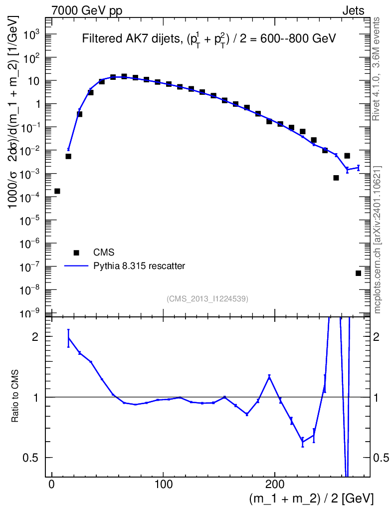 Lines: data, pythia8 8.315 rescatter |