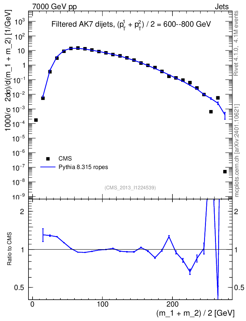 Lines: data, pythia8 8.315 ropes |
