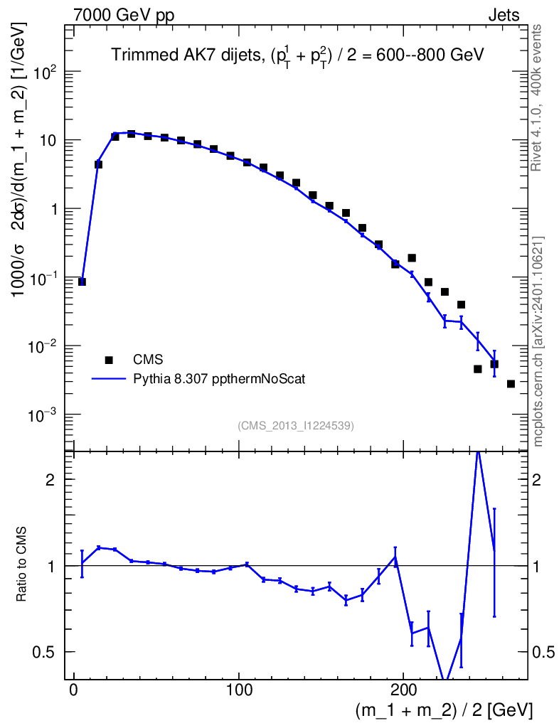 Lines: data, pythia8 8.307 ppthermNoScat |