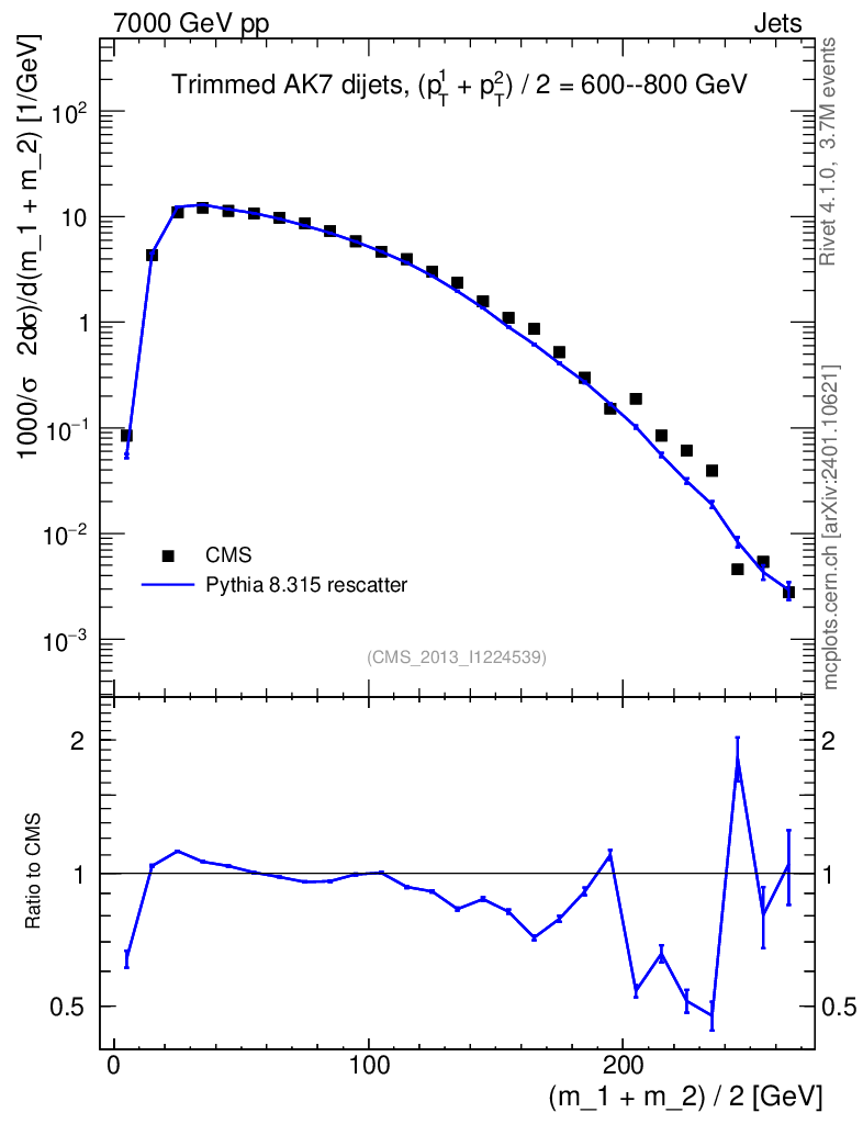 Lines: data, pythia8 8.315 rescatter |