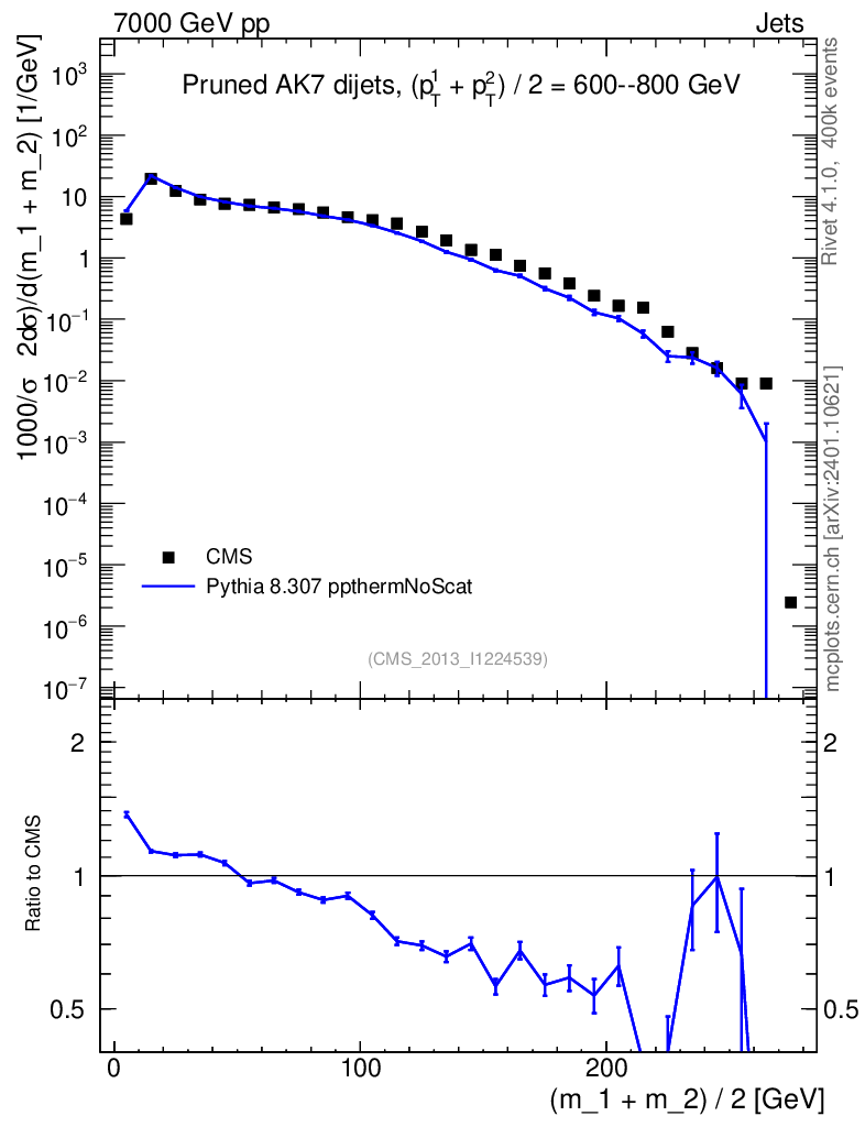 Lines: data, pythia8 8.307 ppthermNoScat |