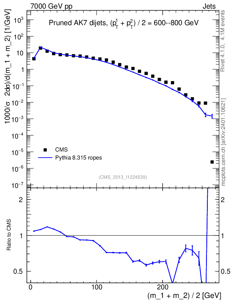 Lines: data, pythia8 8.315 ropes |