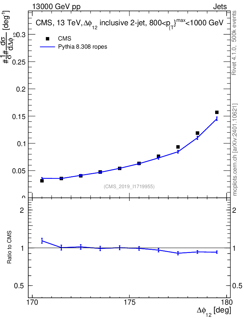 Lines: data, pythia8 8.308 ropes |