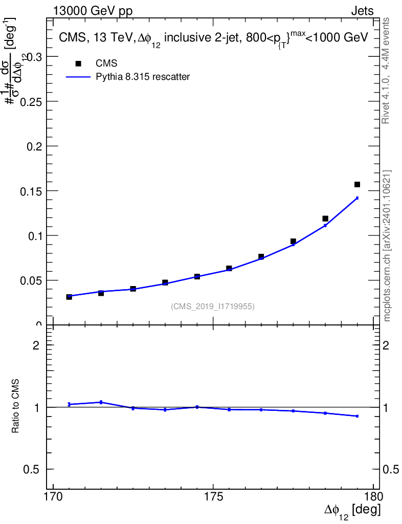 Lines: data, pythia8 8.315 rescatter |