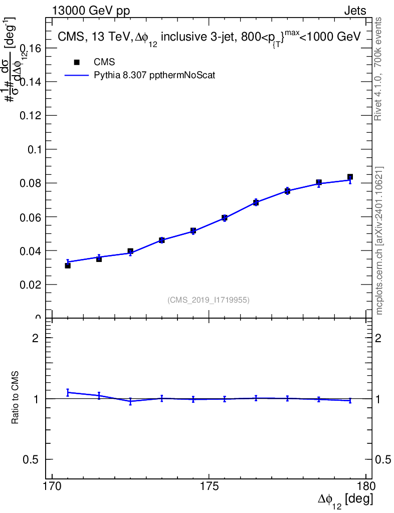 Lines: data, pythia8 8.307 ppthermNoScat |