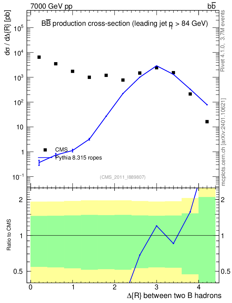 Lines: data, pythia8 8.315 ropes |