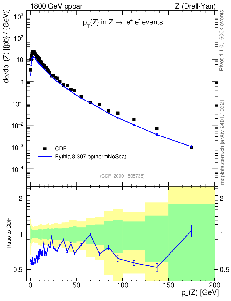 Lines: data, pythia8 8.307 ppthermNoScat |
