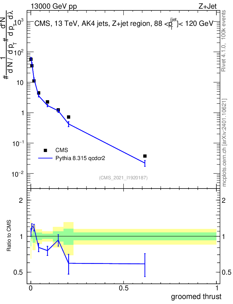 Lines: data, pythia8 8.315 qcdcr2 |