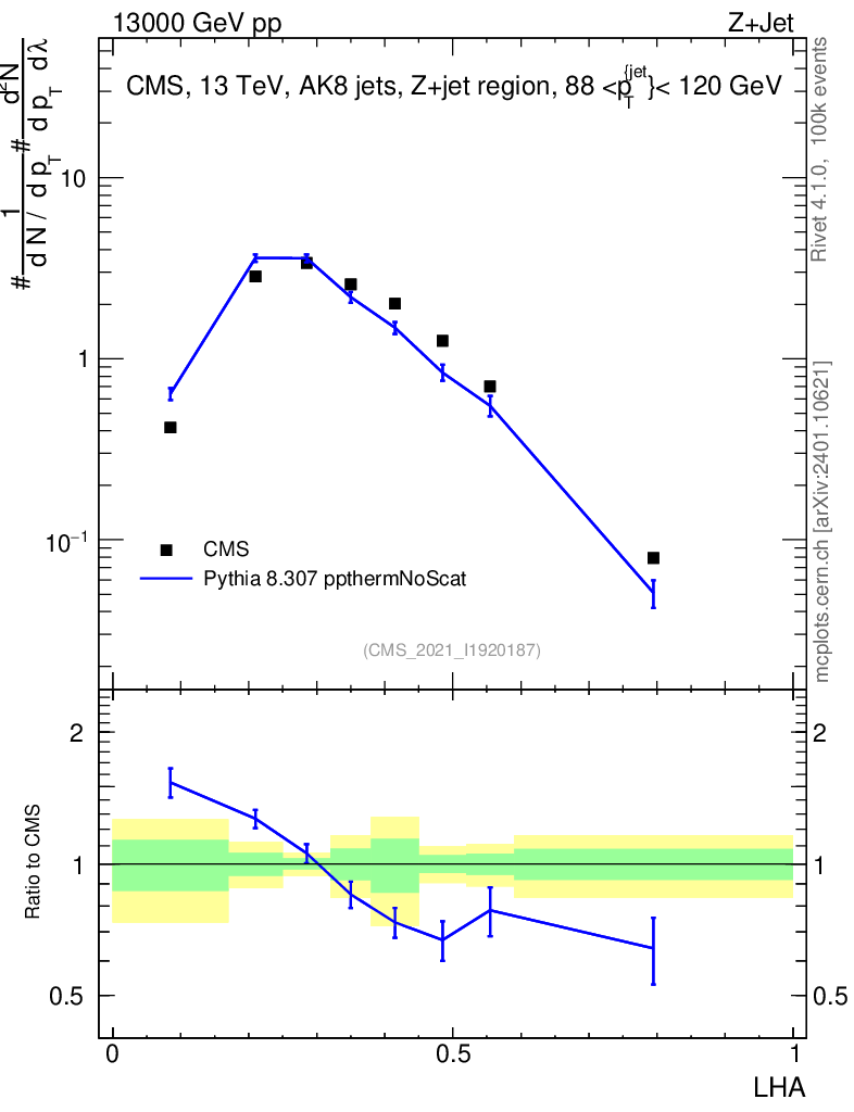 Lines: data, pythia8 8.307 ppthermNoScat |