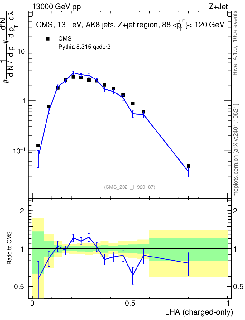 Lines: data, pythia8 8.315 qcdcr2 |