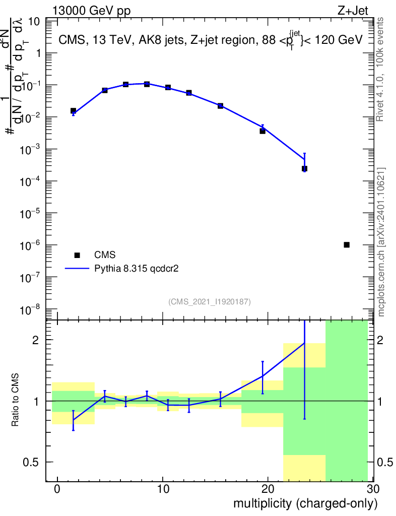 Lines: data, pythia8 8.315 qcdcr2 |