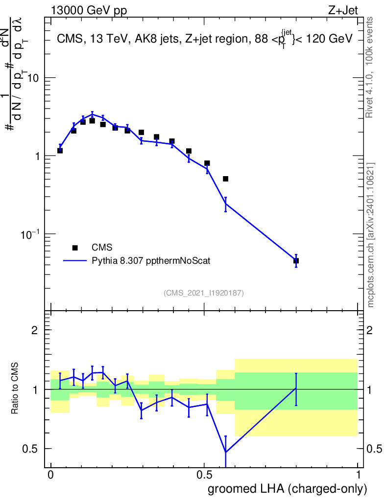 Lines: data, pythia8 8.307 ppthermNoScat |