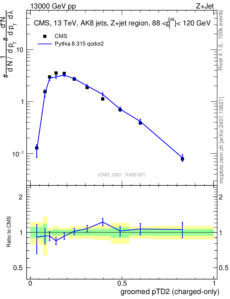 Lines: data, pythia8 8.315 qcdcr2 |