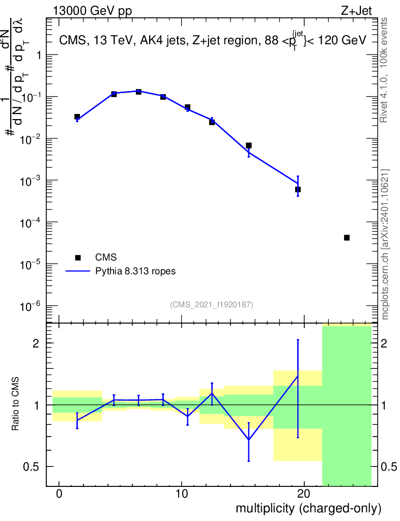 Lines: data, pythia8 8.313 ropes |