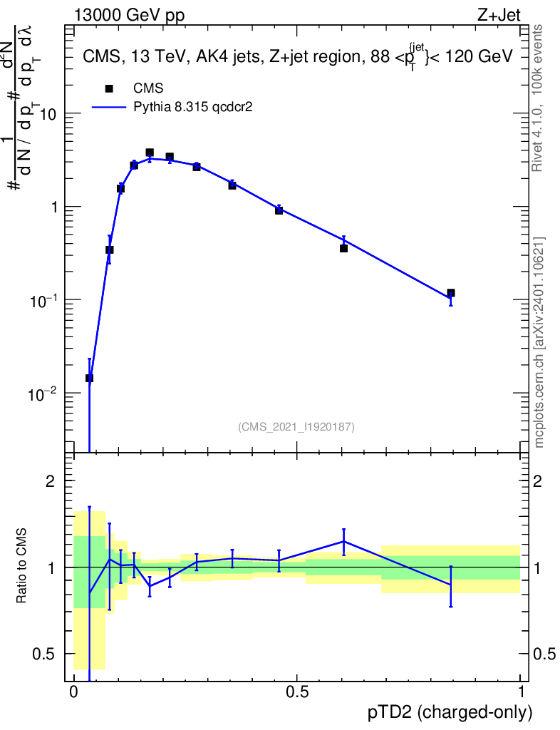 Lines: data, pythia8 8.315 qcdcr2 |