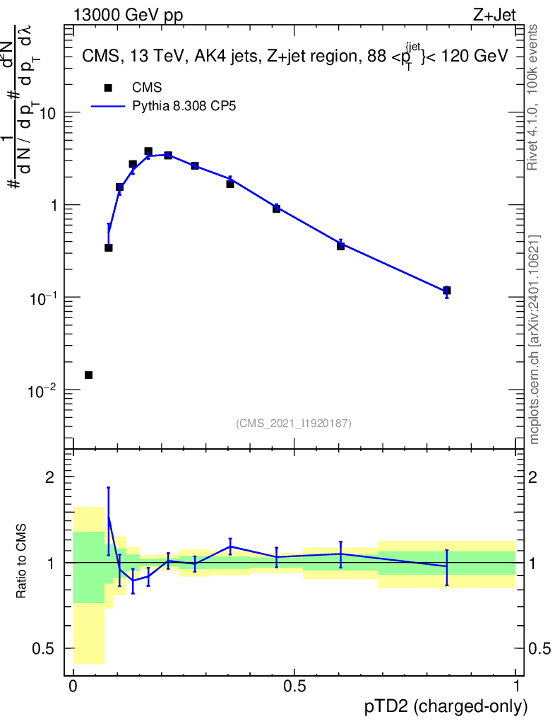 Lines: data, pythia8 8.308 CP5 |