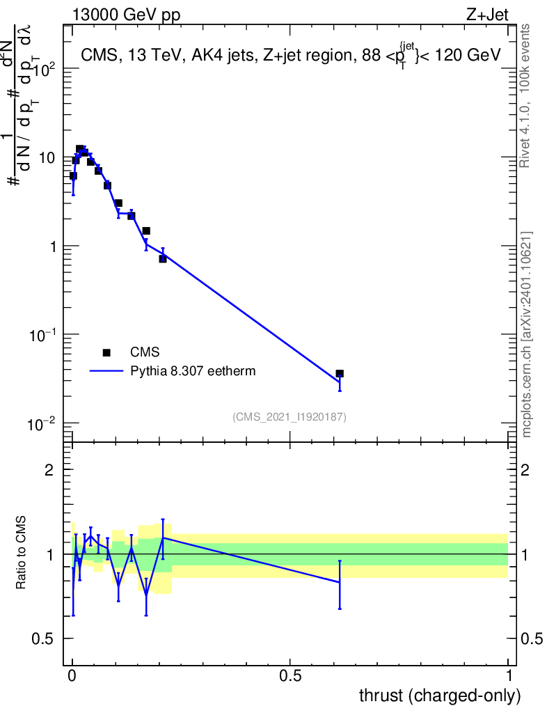 Lines: data, pythia8 8.307 eetherm |