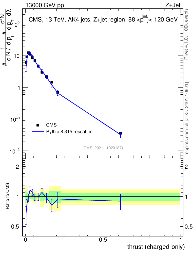 Lines: data, pythia8 8.315 rescatter |