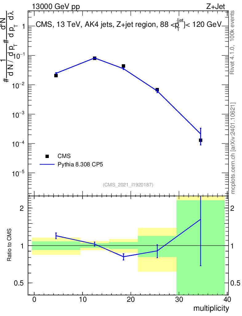 Lines: data, pythia8 8.308 CP5 |